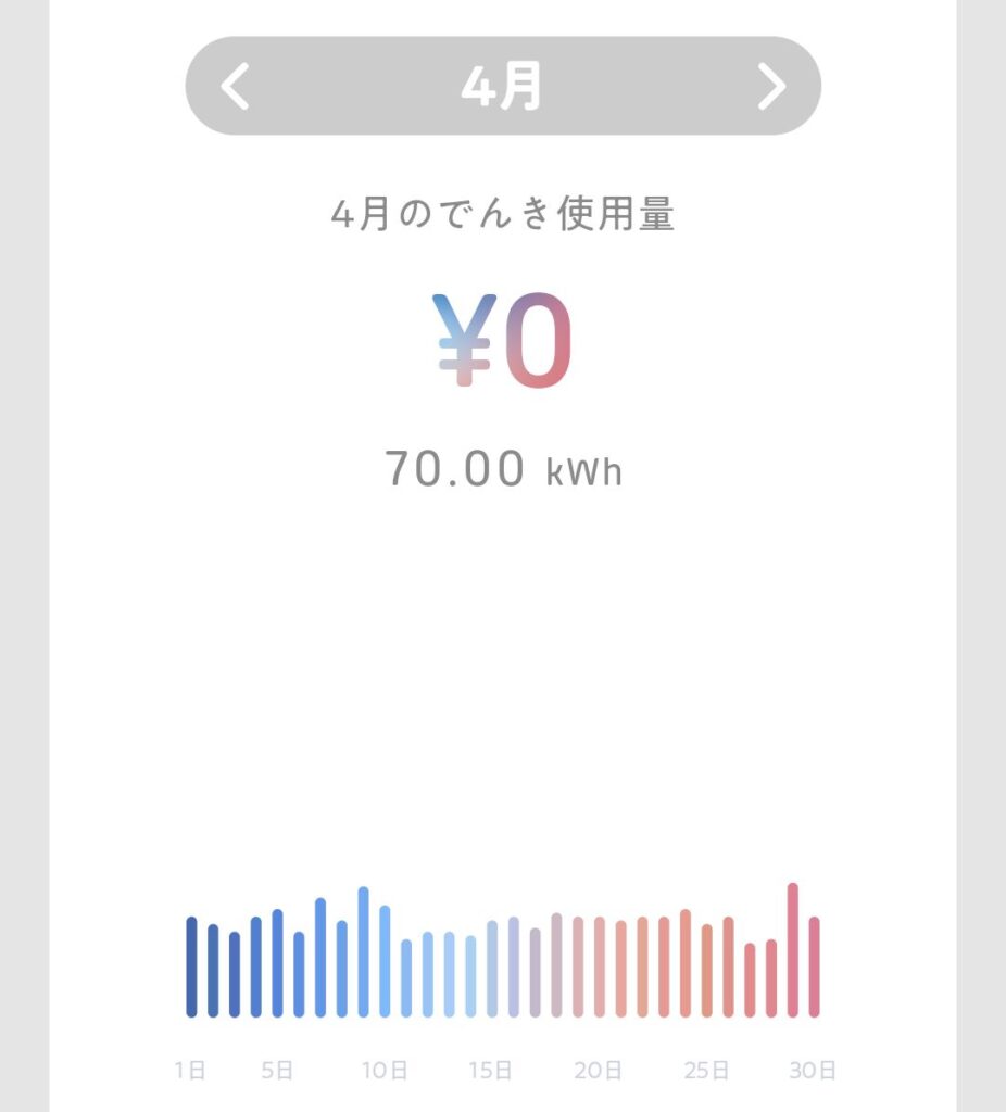 | 4月 | 70.00kWh | 0円 |