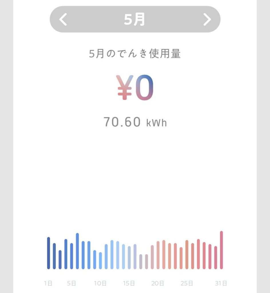 | 5月 | 70.60kWh | 0円 |